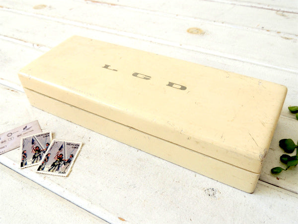 アメリカでみつけました・・”LDG”お洒落なクリームカラー&デザインのアンティーク・ウッドボックス(宝石箱&ジュエリーボックス)です。