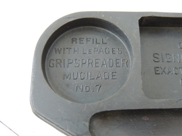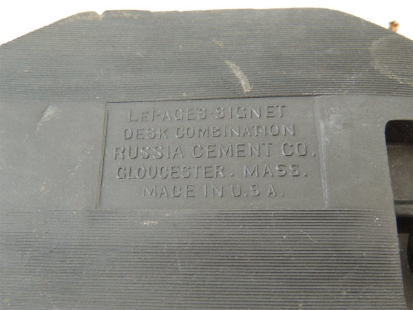 表面に【REFILL WITH LEPAGES GRIPSPREADER MUGILAGE NO.7/ONLY SIGNET CUBES EXACTLY FIT THIS CAVITY】、裏面に【LE PAGE'S -SIGNET DESK COMBINTION RUSSIA CEMENT CO. CLOUCESTER MASS.MDE IN USA】の印がございます。