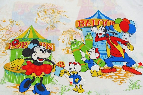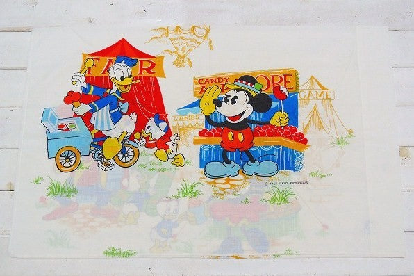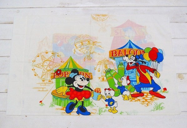 アメリカで見つけました・・ディズニー『ミッキー&フレンズ』のお祭り柄・ヴィンテージ・USEDピロケース(枕カバー)です。