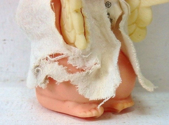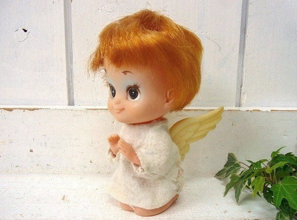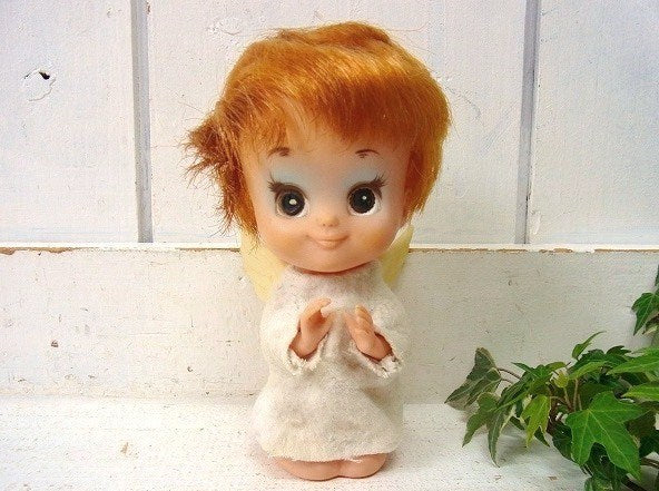 海外向けに輸出されていたソフトビニール製の人形で、天使の羽が付いた女の子です。目の大きな女の子(ビッグアイ)!ショートカットのブロンドヘアーで、白いワンピースを着ています。