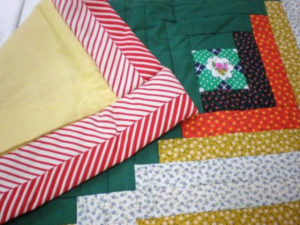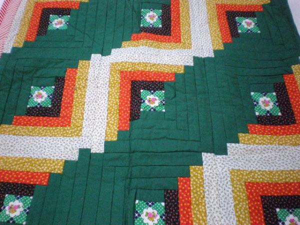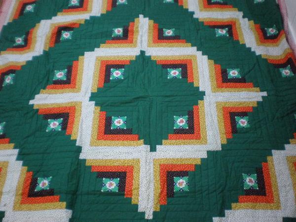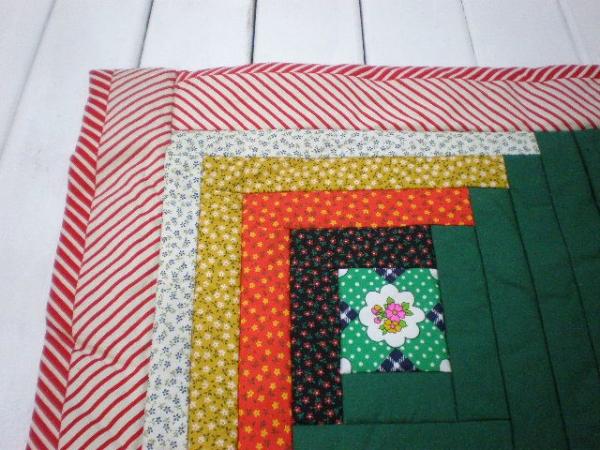 ハンドメイドのログキャビン・パッチワーク・花柄マルチカバー