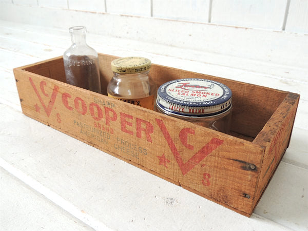 アメリカで見つけました・・1893年より創業の老舗チーズブランド『COOPER BRAND』の木製・アンティーク・チーズボックスです。