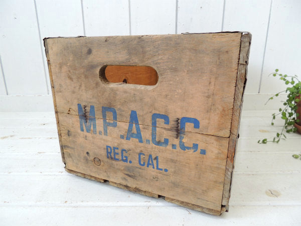 アメリカで見つけました・・昔カリフォルニアにあったミルクカンパニー『M.P.A. C.C.』のヴィンテージ・ウッドボックスです。