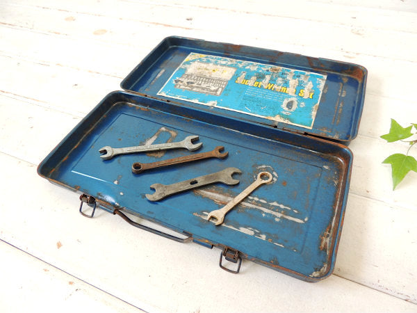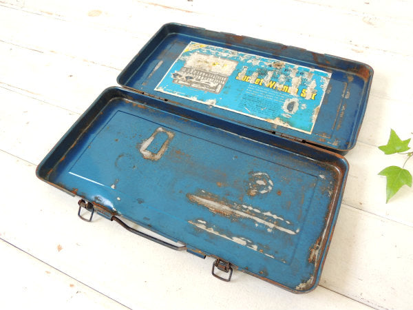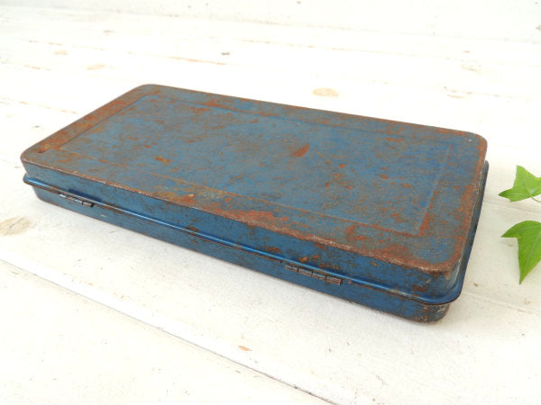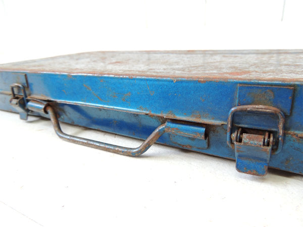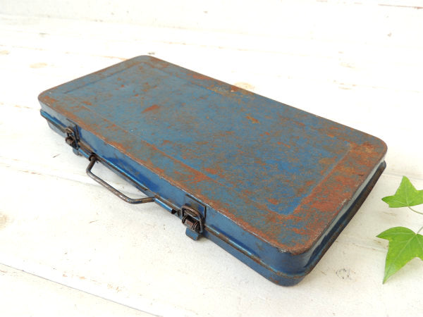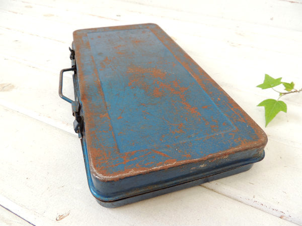 【ブルーメタリック・工業系】ブリキ製・ビンテージ・ツールボックス/工具箱・ケース・ハンドル付き