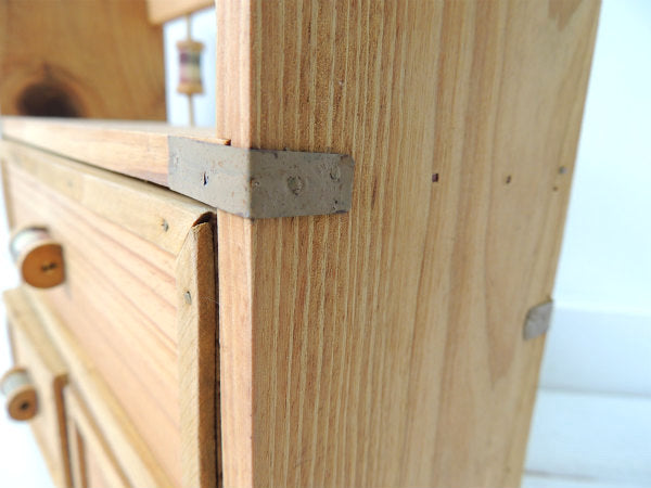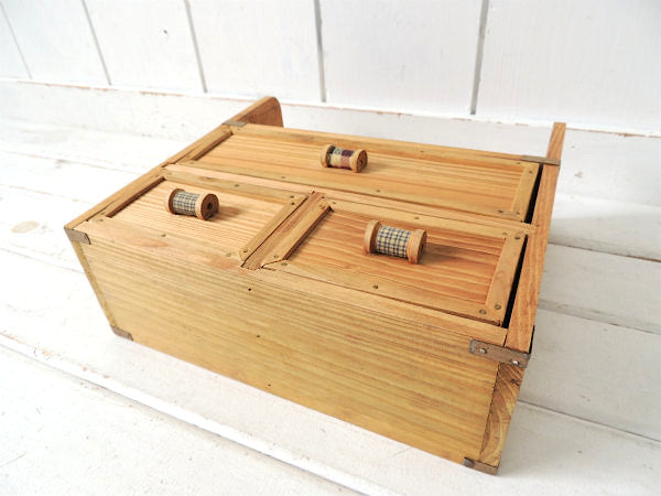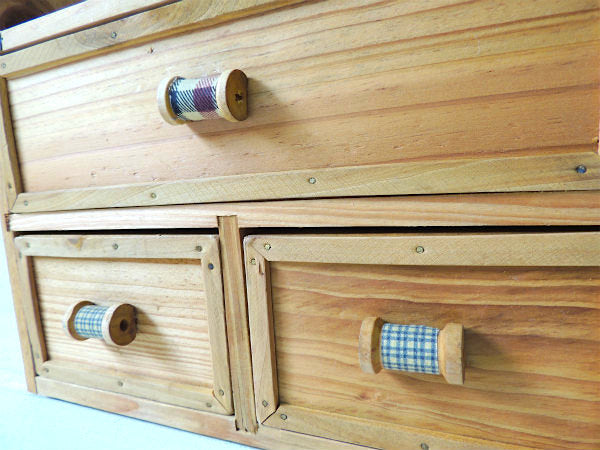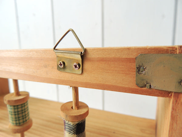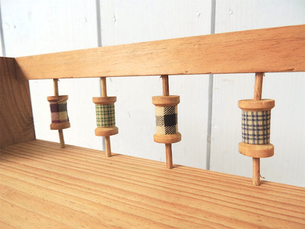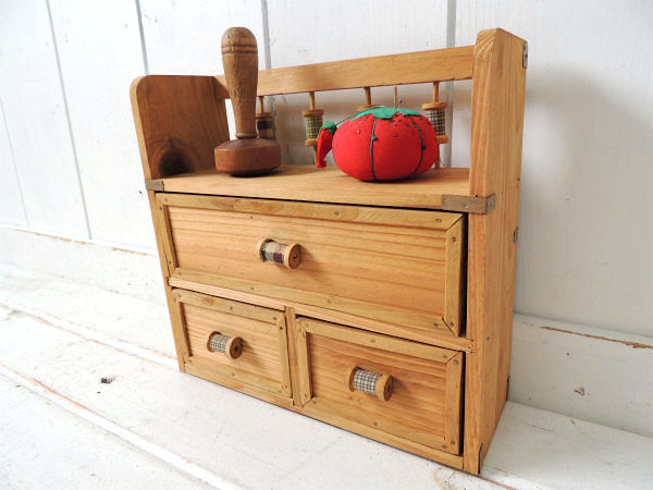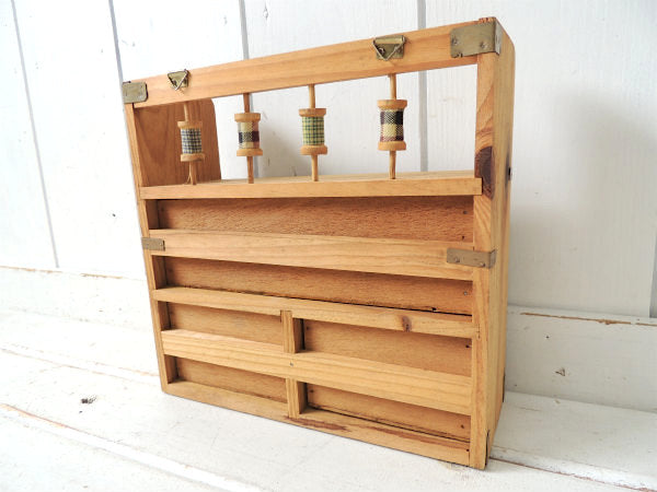 糸巻きモチーフ付き・木製・ヴィンテージ・ソーイングボックス 裁縫棚 卓上チェスト
