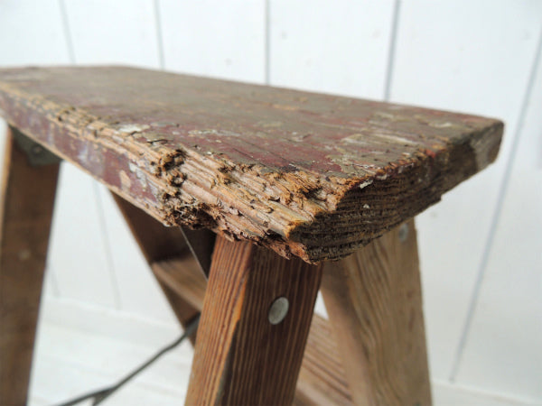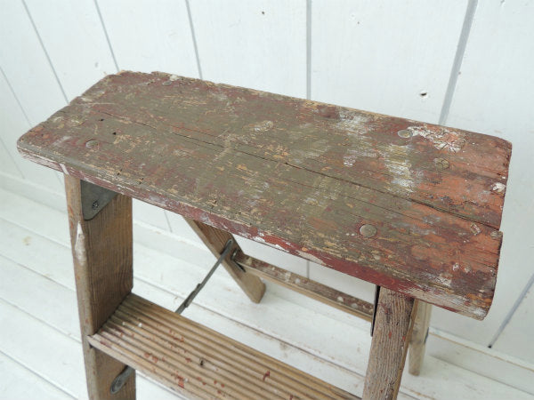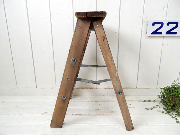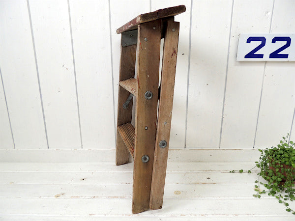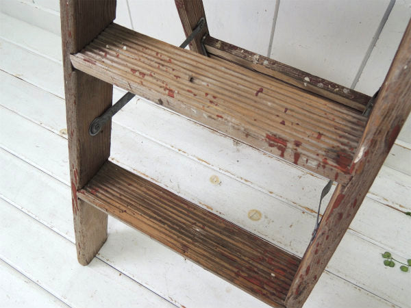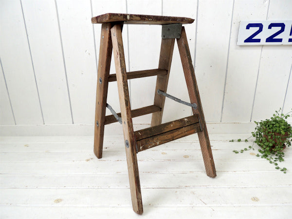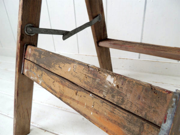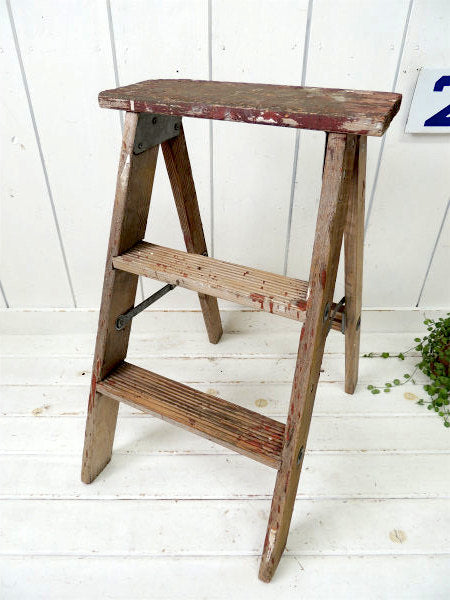 アメリカで見つけました・・ペンキの付いた木製・アンティーク・ステップラダー(脚立・踏み台)です。
