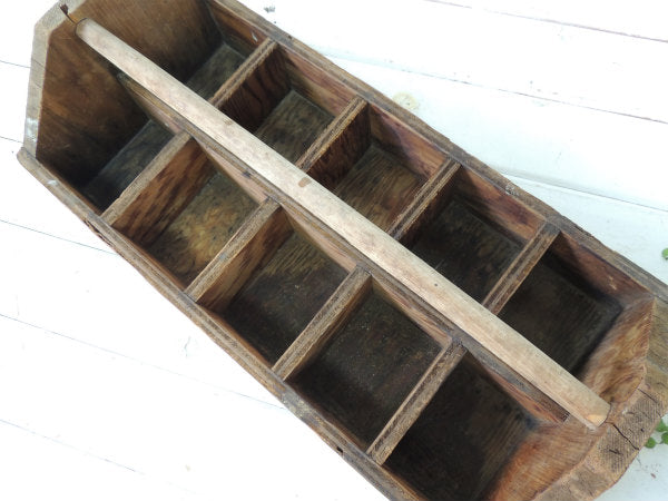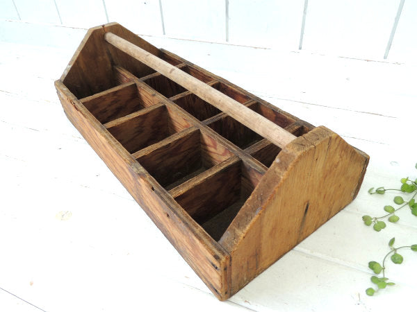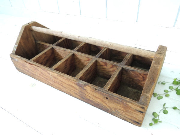 アメリカ西海岸・カリフォルニアで見つけてきました・・古い木製の仕切り付きアンティーク・ツールボックス(木箱・ウッドボックス)です。