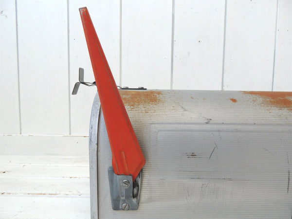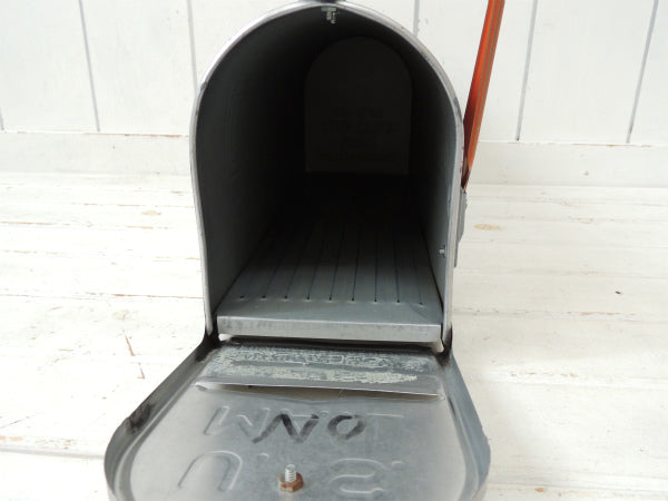 アメリカではよく見かけるポピュラーな郵便受けで、サイドの赤い旗(ティン製)を立てておくと、郵便屋さんが配達時に内側の郵便物を持って行ってくれるという、優れたシステムです。