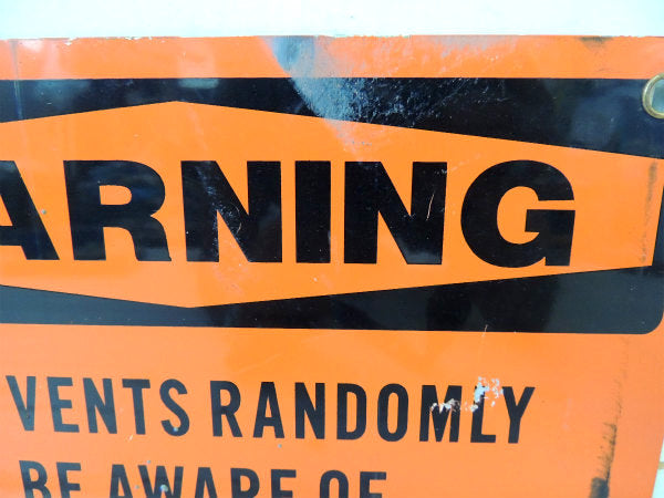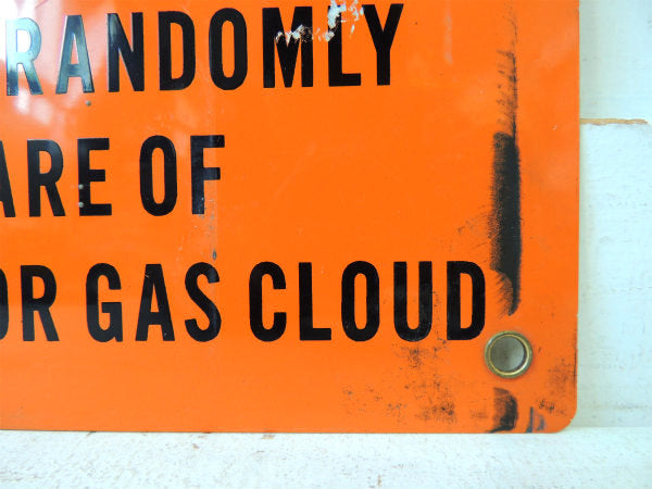 アメリカでみつけました・・1960年〜1970年代頃『WARNING LINE VENTS RANDOMLY BE AWARE OF POTENTIAL FOR GAS CLOUD』のヴィンテージ・スチール製・ストリートサイン(看板)です。