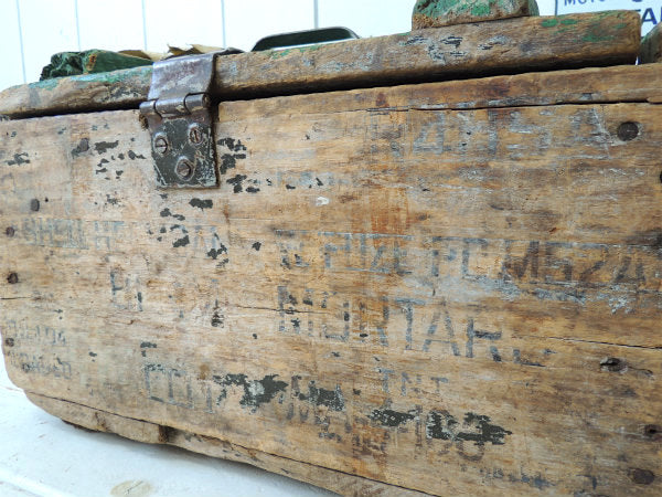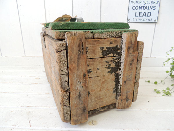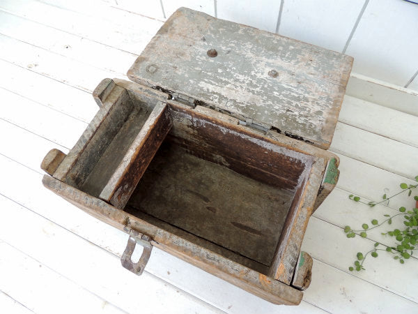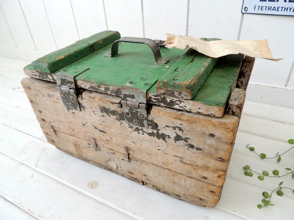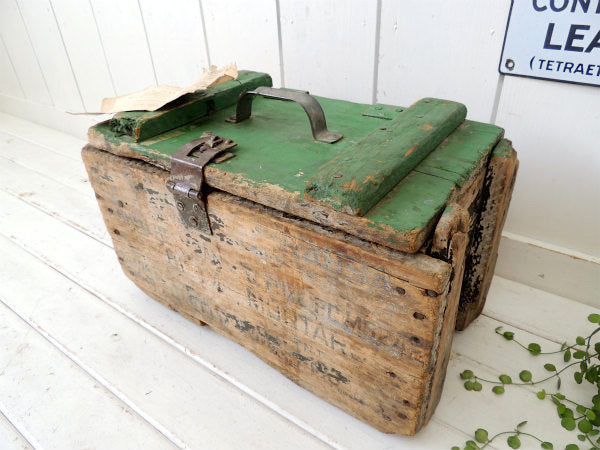 フタはグリーン色で、側面は全体にカーキ色のペンキ剥がれがあり、年代を経た味わいがございます。