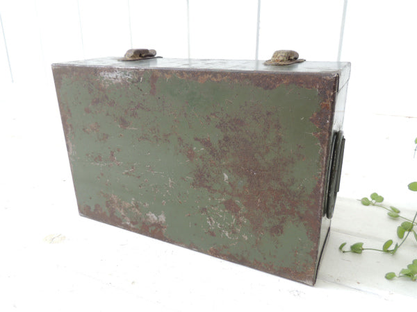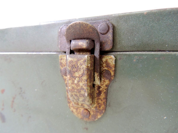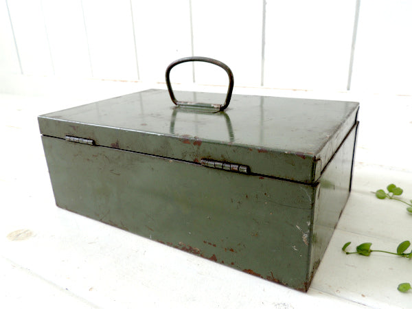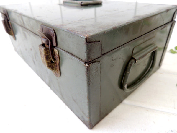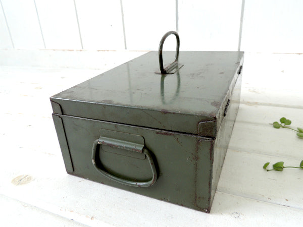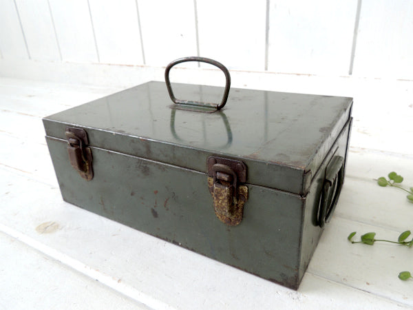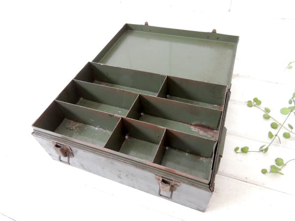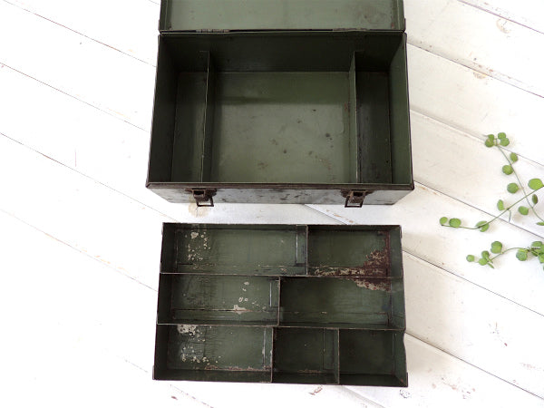 【ミリタリー・2段式・仕切り付き】モスグリーン・メタル製・ヴィンテージ・ツールボックス/工具箱