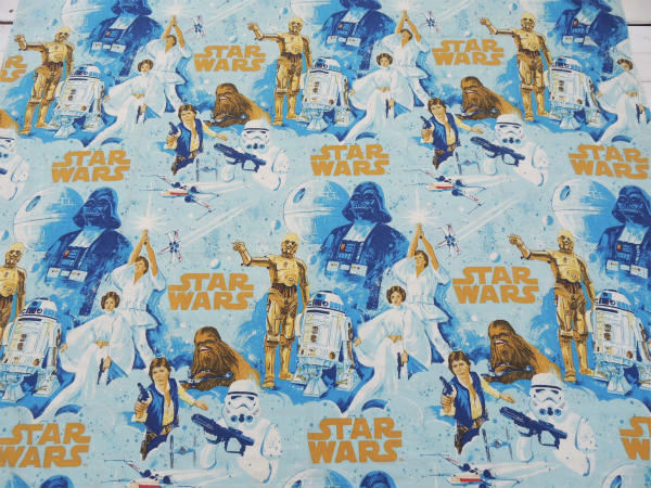 アメリカで見つけました・・ジョージルーカスが製作・監督したアメリカのSF映画『スターウォーズ(STAR WARS)』のヴィンテージ・USEDフラットシーツです(ツインサイズ)。