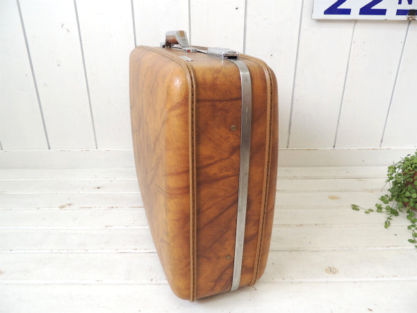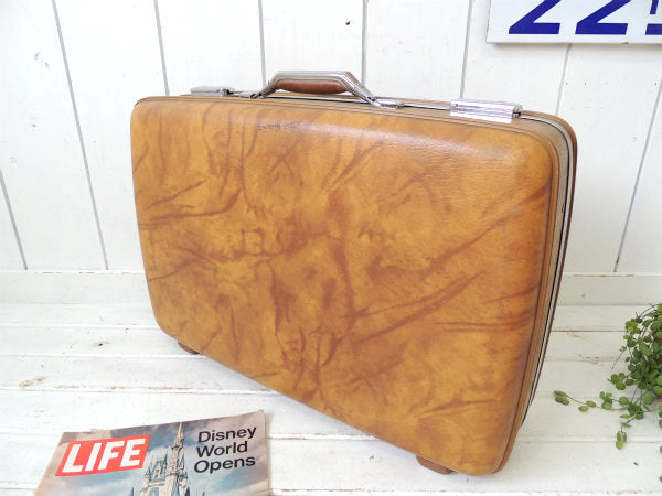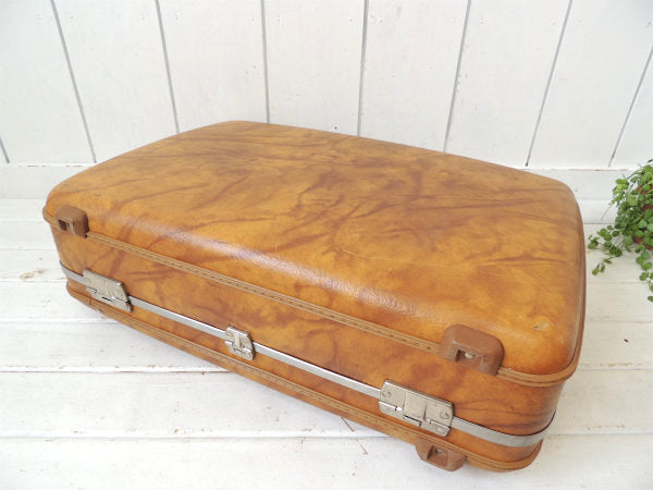 【アメリカンツーリスター】ブラウンマーブル色・鍵付き・ヴィンテージ・スーツケース/トランク①