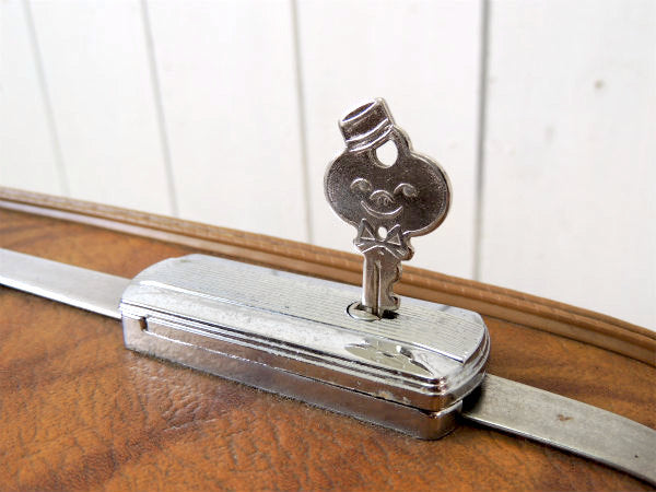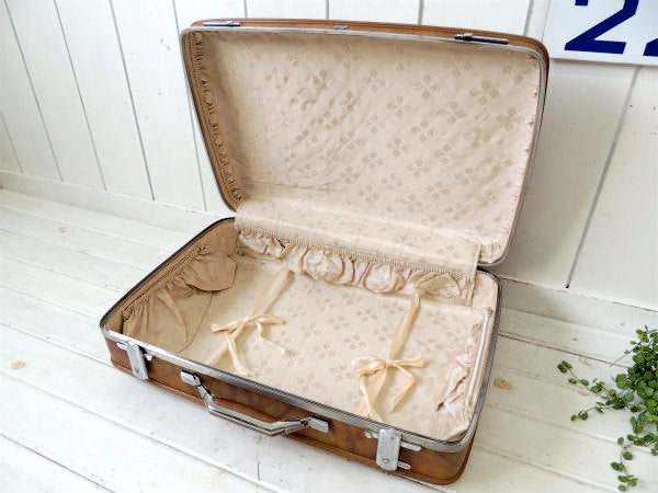 アメリカで見つけました・・1933年にアメリカ合衆国ロードアイランド州で誕生した、アメリカでは誰でも知っている旅行かばんブランド『American Tourister(アメリカン・ツーリスター)』の鍵付き・ブラウンマーブル色・ヴィンテージ・スーツケース(トランク)です。