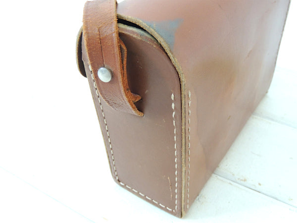 年代を経た革製のレトロ感たっぷりなカメラケースです。