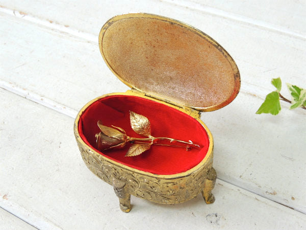 【フラワーモチーフ・ゴールド色】脚付き・アンティーク・ジュエリーボックス・宝石箱・アクセサリーケース