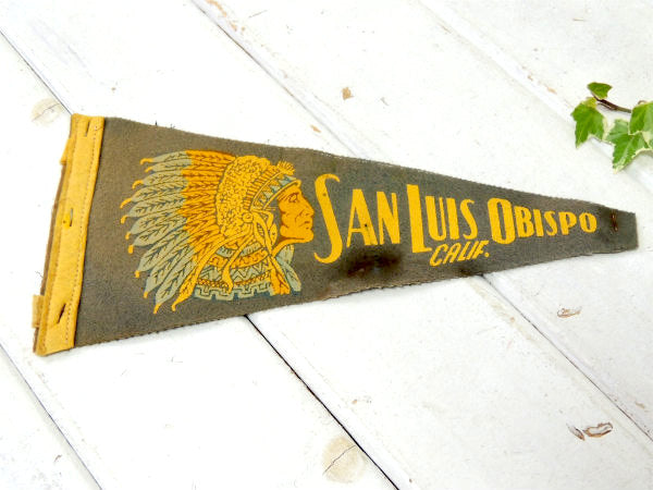 アメリカで見つけました・・1940~1950年代頃 "サンルイス・オビスポ・カリフォルニア州"アメリカ合衆国のインディアン・ヴィンテージ・ペナントです。