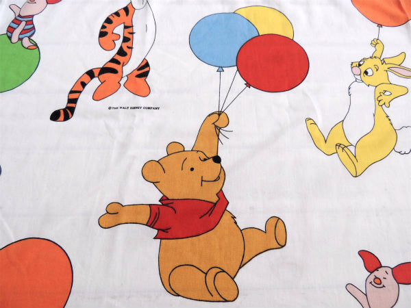 【くまのプーさんと森の仲間たち】風船柄・ヴィンテージ・ユーズドシーツ(フラットタイプ) USA