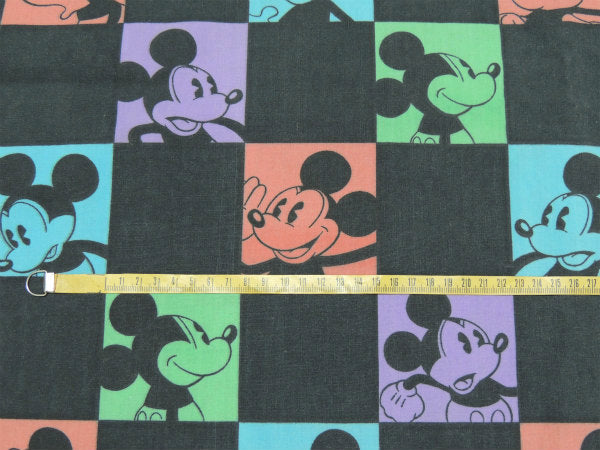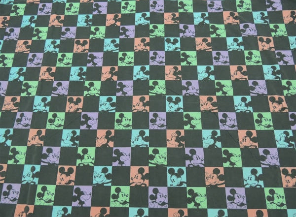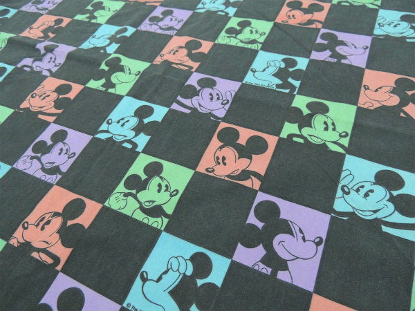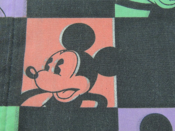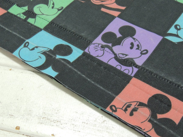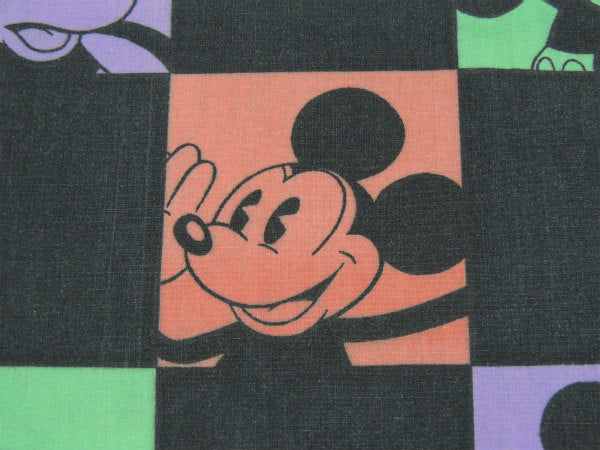 【ミッキーマウス】ブロックチェック柄・ヴィンテージ・ユーズドシーツ(1/2) USA
