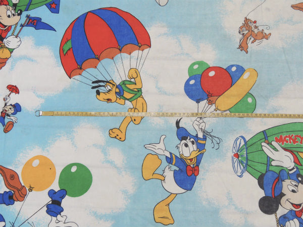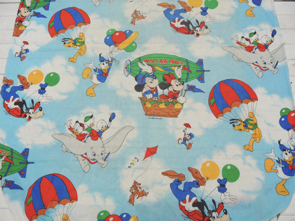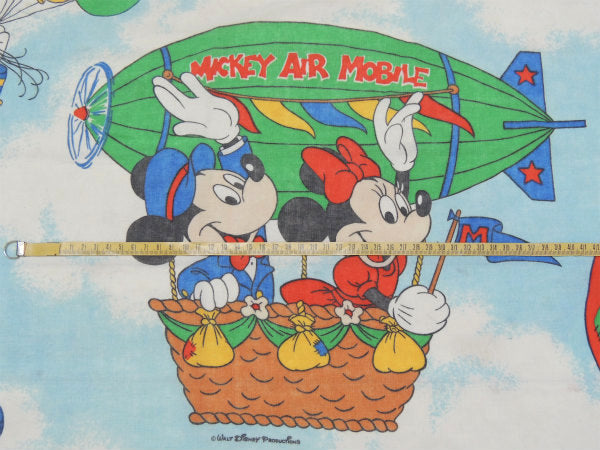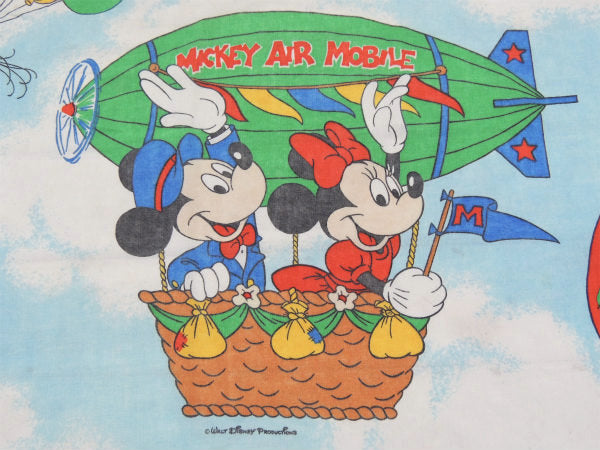 【ミッキー&フレンズー】ディズニー・飛行船柄・ヴィンテージ・ユーズドシーツ(ボックスタイプ)USA