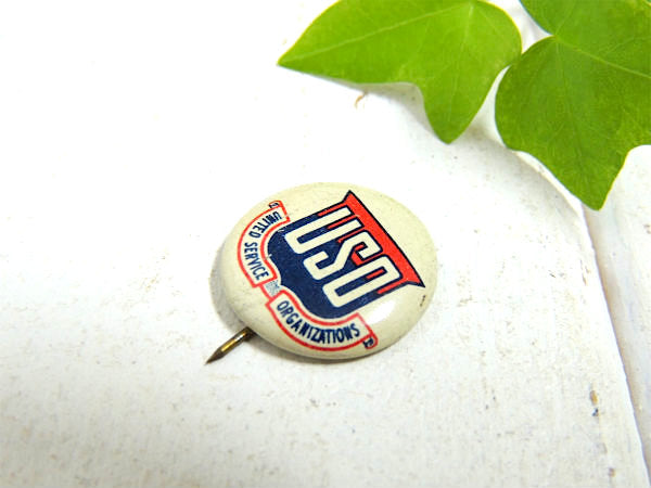 カリフォルニア・サンフランシスコで見つけました・・『USO・ユナイテッド・サービス・オーガニゼイション』・ヴィンテージ・缶バッジ・pinです。