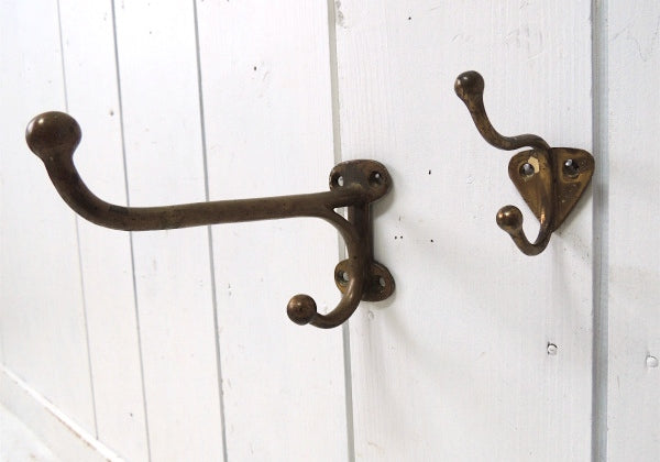 真鍮製の大きなアンティーク・ウォールフック/ハンガーフック USA