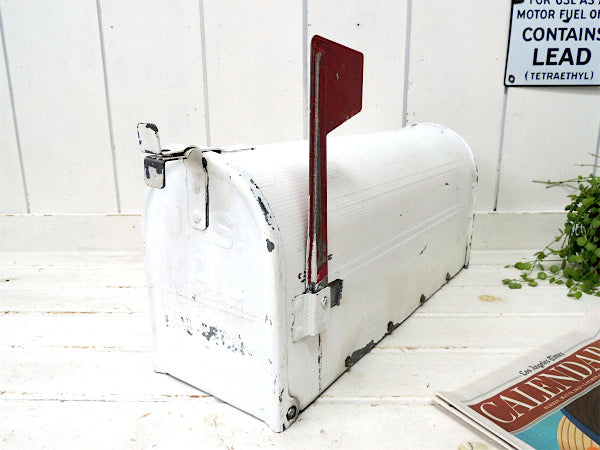 アメリカで見つけました・・白色にペイントされたブリキ製の『U.S MAIL』ヴィンテージ・メールボックス(郵便受け/ポスト)です。