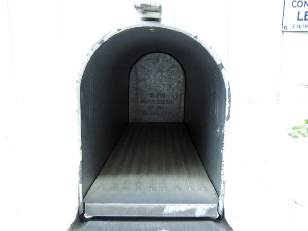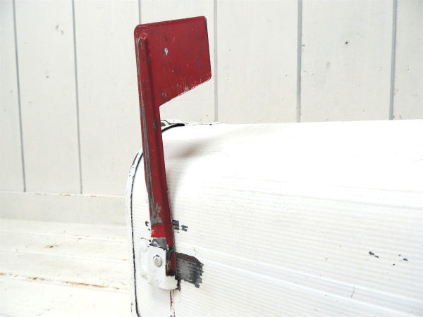 アメリカではよく見かけるポピュラーな郵便受けで、サイドの赤い旗(ティン製)を立てておくと、郵便屋さんが配達時に内側の郵便物を持って行ってくれるという、優れたシステムです。