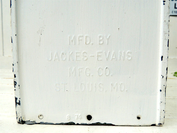 取っ手下に【U.S MAIL APPROVED BY THE POSTMASTER GENERAL】、背面に【MF'D. BY JACLES-EVANS MFG. CO. ST. LOUIS, MO.】とエンボス英文字が入っております。