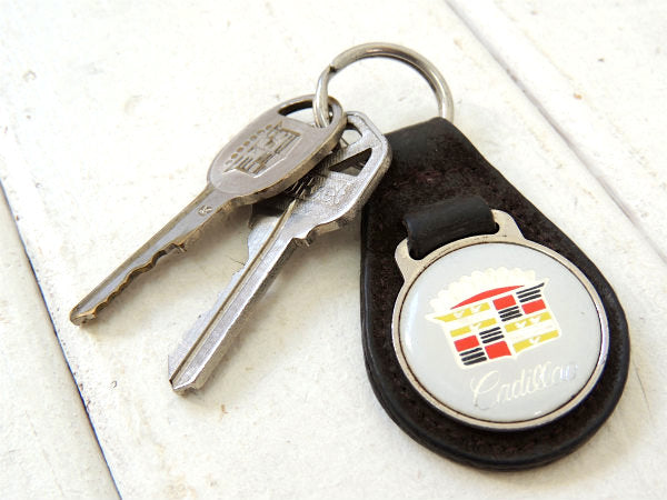 アメリカ西海岸で見つけました・・古い鍵2本付きのレザー ヴィンテージ・キャデラック CADILLAC/GM アメ車(MotorSales) アドバタイジング キーホルダーです。年代不明