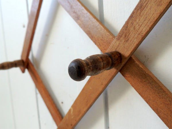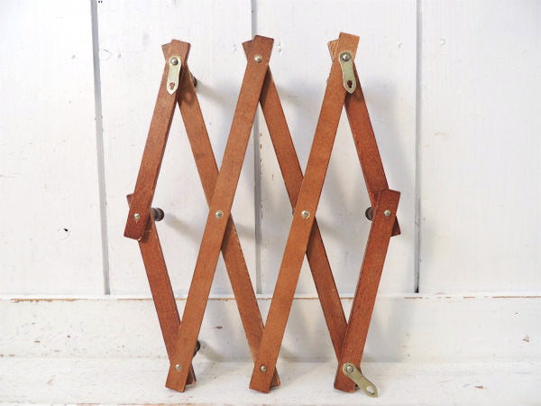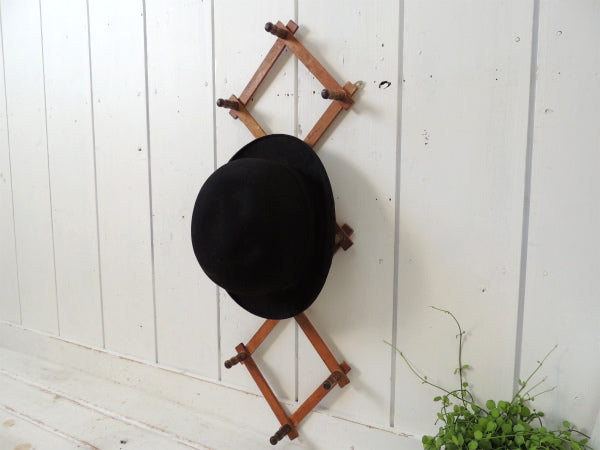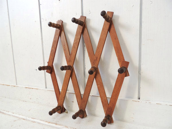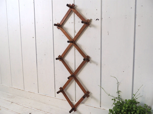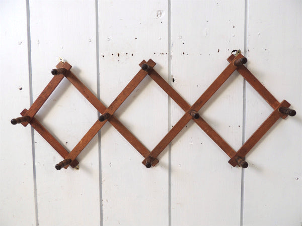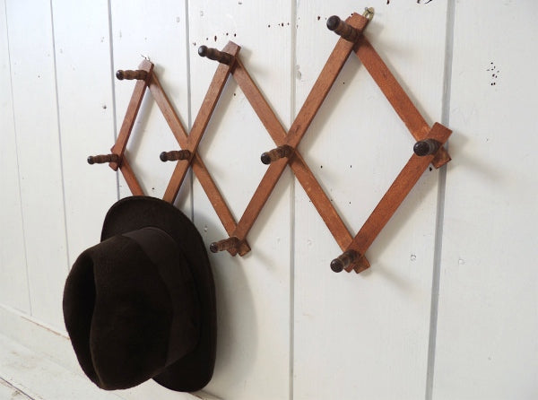 ジャバラ式・木製・壁掛けアンティーク・ハットラック/コートフック USA