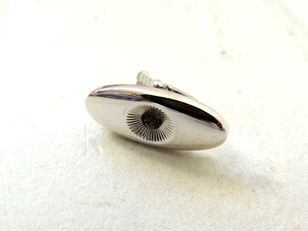 アメリカで見つけました・・・ヴィンテージ''シルバーカラー+中央部分にダイヤモンドのような輝き・シンプルデザイン"入り お洒落なタイピン(タイバー)です。 SWANK(スワンク)社製  1960年~80年代頃 ※実際にアメリカで使われていたもの。 ネクタイの布をはさむタイプです。 もちろんお洒落なネクタイと合わせたり、大好きな人へのプレゼントに1点物はいかがですか♪ ネクタイピンは指輪やネックレスと違って、ファッション性と機能性を兼ね備えたアクセサリー♪胸元を飾るものですからデザイン・フォルムはとっても大事になりますが、ネクタイの揺れや乱れを防ぐための お洒落なアイテムの一つ。 多少のスリキズ等ございます。 ヴィンテージ・USED・ネクタイは付属いたしません。 ダイヤモンドではないと思われます。 画像(写真)でのご判断を宜しくお願い致します。 ■シルバー色 ■size: 約 W2.7㎝(横幅)      ■コンディション : ★★★★☆ ■レターパックライト¥360対応可(追跡サービスあり・補償なし) ※ご注文の際、お手数ですがメッセージ欄に『レターパックライト希望』とご記入下さい。新たにお見積もりをメールにてお知らせさせていただきます。