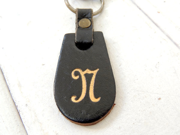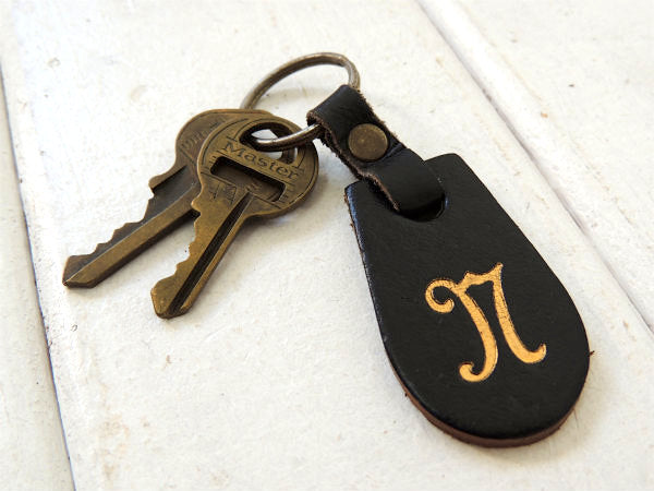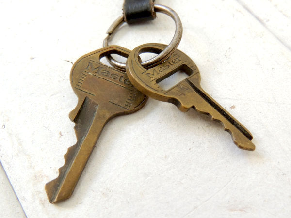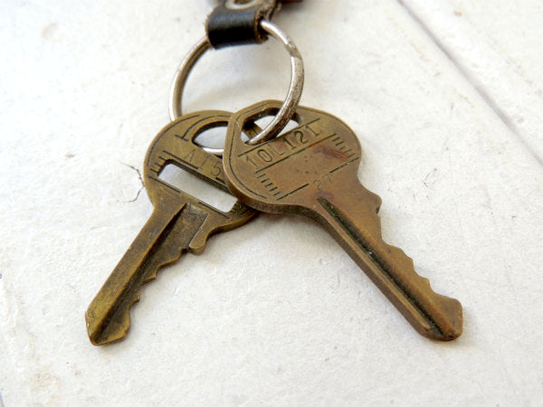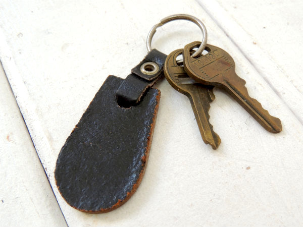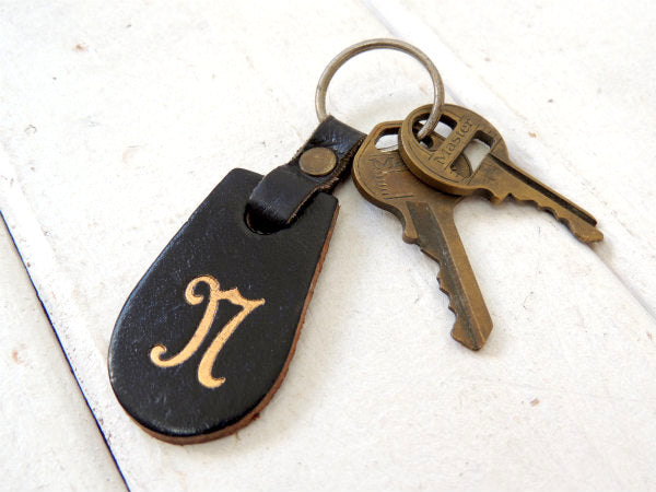 【レザー/革製】英字・筆記体R柄・ビンテージ・キーホルダー・USA・古鍵2本付