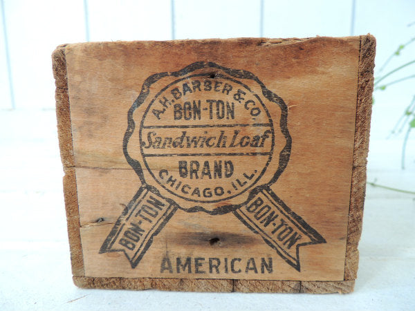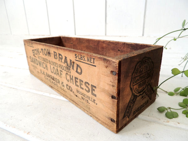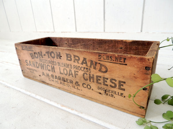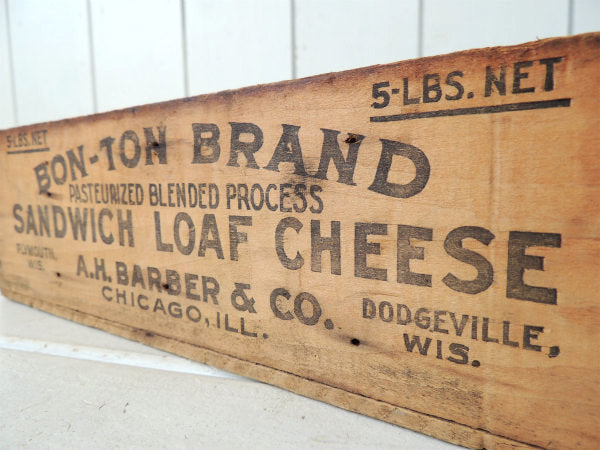 4面にブランドロゴや【5-LBS,NET BON-TON BRAMD PASTEURIZED BLENDED PROCESS SANDWICH LOAF CHEESE A.H. BARBER&CO. CHICAGO, ILL.】の英文字プリントが入っております。