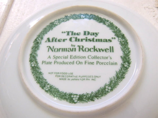 背面に【“The Day after Christmas” After Christmas” by Norman Rockwell A Special Edition Collector's Plate Produced On Fine Porcclain】【NOT FOR FOOD USED FOR DECORATIVE PURPOSES ONLY MADE IN JAPAN FOR RH INC.】とございます。
