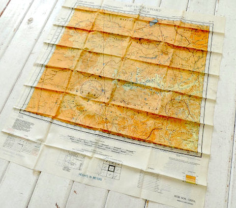 ミリタリー・ヴィンテージ・マップ・両面地図 ”AAF CLOTH CHART. No. NL 50 & No. NL 51. BUIR NOR NL 50.” A.M.S. 5301/First Edition 1944 /ARMY MAP SERVICE.U.S.ARMY,WASHINGTON,D.C..302232/U.S.Army Air Forces.......