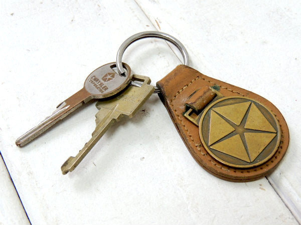 【クライスラー・アメ車】ヴィンテージ・革・茶色・レザーキーホルダー・鍵2本付き・モーター系