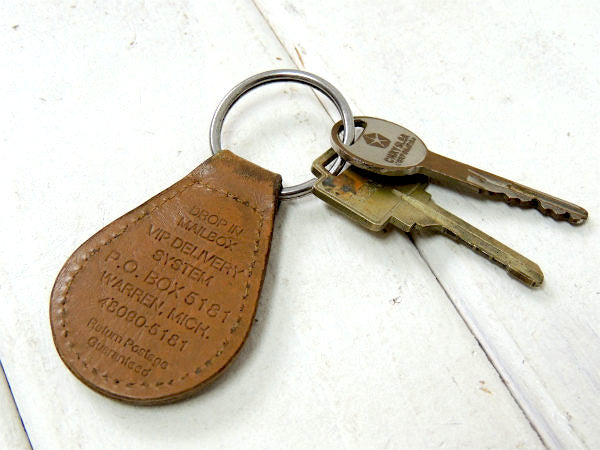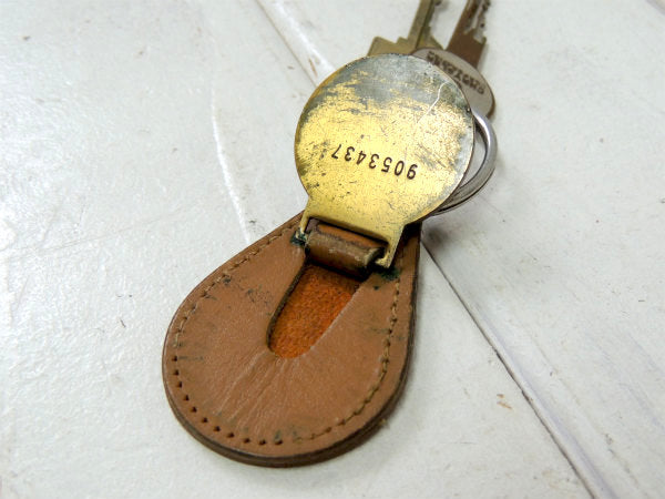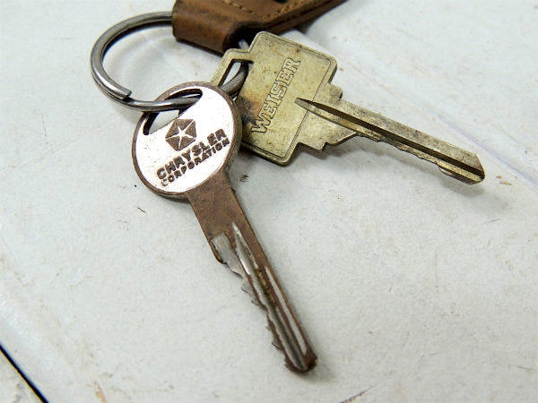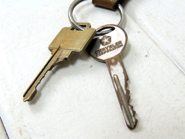 アメリカ西海岸・カリフォルニアで見つけました・・古い鍵2本付きのブラウンレザー+メタル ヴィンテージ・CHRYSLER アメ車(MotorSales) アドバタイジング キーホルダーです。年代不明