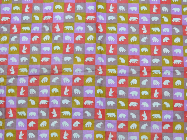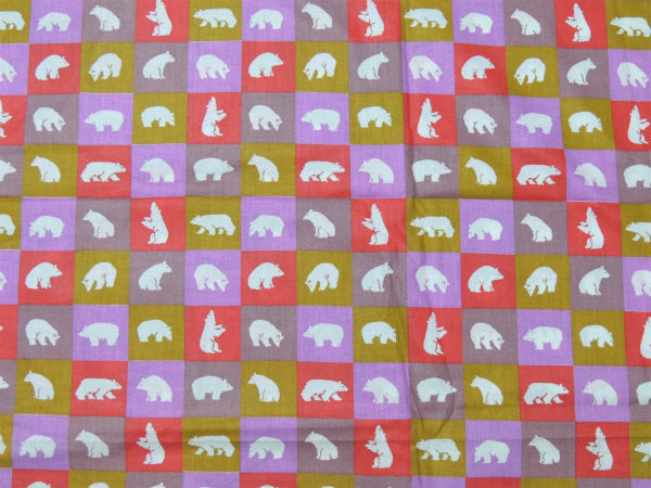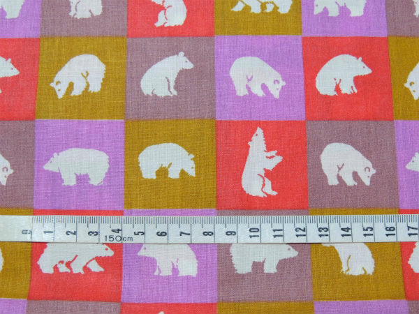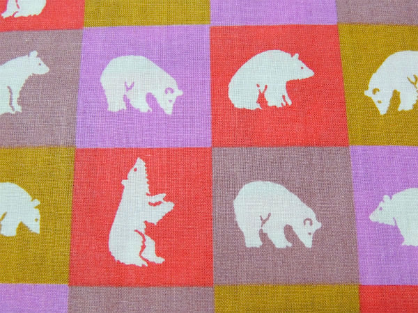 アメリカ西海岸・カリフォルニア州・サンフランシスコで見つけました・・クマのブロックチェック柄・デッドストック未使用・ヴィンテージ・ファブリック(生地)です。
