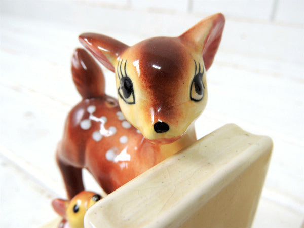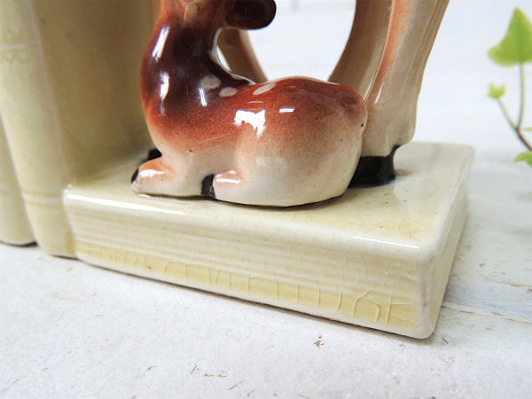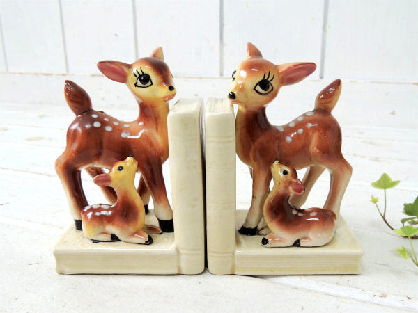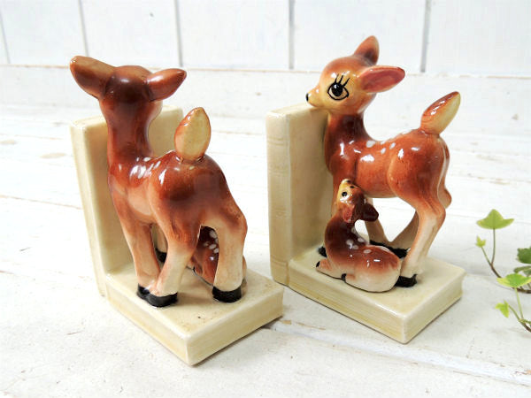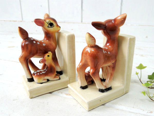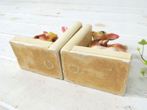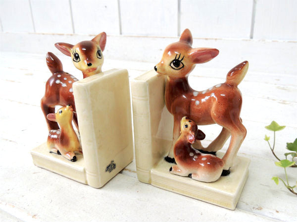 【Exclusive BP】鹿の親子・バンビ・セラミック製・ヴィンテージ・ブックエンド/本立て