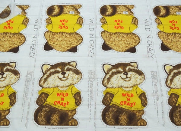 アメリカで見つけました・・グリーティングカードでお馴染み『Hallmark(ホールマーク)社』のアライグマのキャラクター【WILD 'N CRAZY】ピロードール・デッドストック未使用・80'sヴィンテージ・パネル生地です。