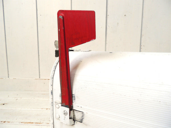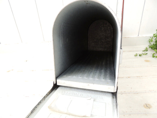 アメリカではよく見かけるポピュラーな郵便受けで、サイドの赤い旗(ティン製)を立てておくと、郵便屋さんが配達時に内側の郵便物を持って行ってくれるという、優れたシステムです。