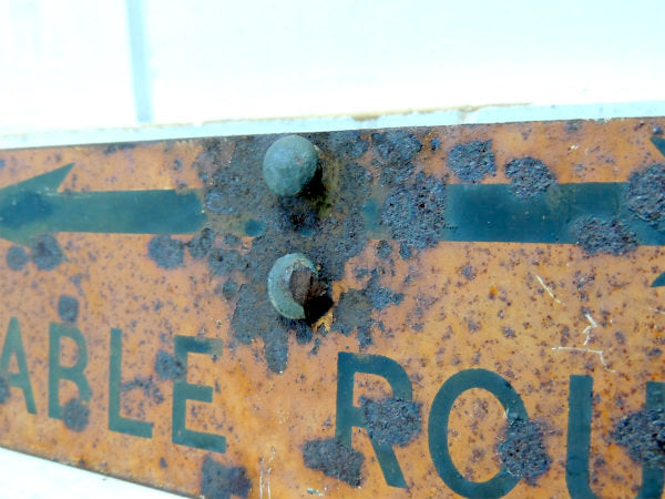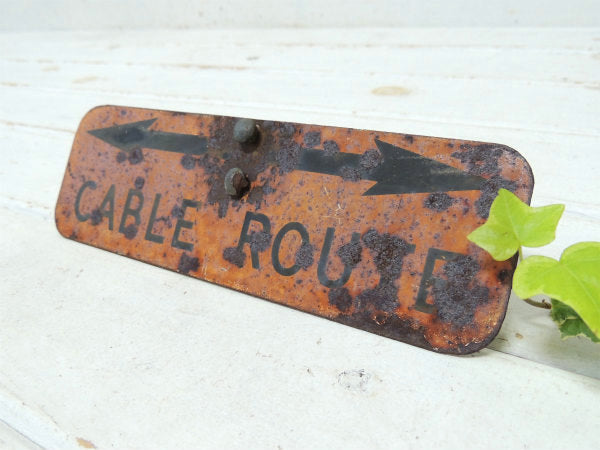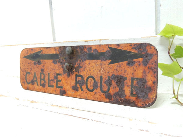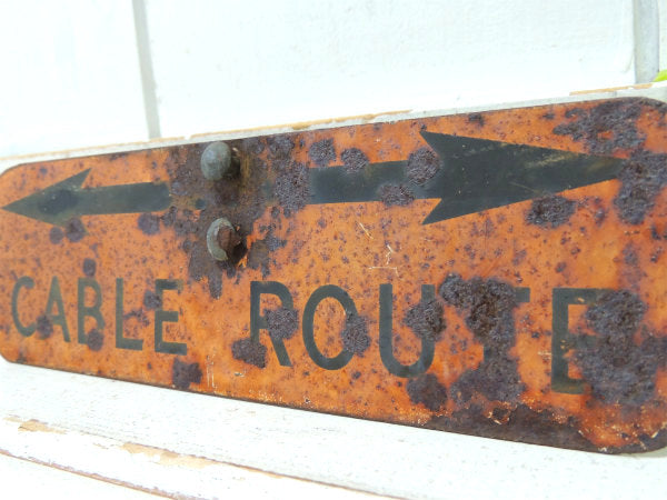USA ←案内表示→CABLE ROUTE ジャンク&シャビー・看板・オレンジイエロー・アンティーク・サインプレート