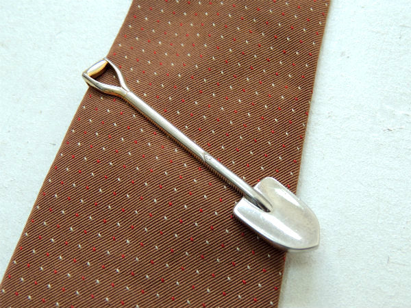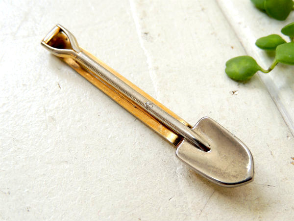 アメリカ西海岸で見つけました・・”スコップ&シャベル”モチーフ・お洒落なデザインのタイピン(タイバー)です。 SWANK社製 1940年~60年代頃 ※実際にアメリカで使われていたもの。 スコップのデザインが とてもクールです。 もちろんお洒落なネクタイと合わせたり、クリスマスプレゼントや特別な人へのプレゼントに1点物はいかがですか♪ ネクタイピンは指輪やネックレスと違って、ファッション性と機能性を兼ね備えたアクセサリー♪胸元を飾るものですからデザイン・フォルムはとっても大事になりますが、ネクタイの揺れや乱れを防ぐための お洒落なアイテムの一つ。 多少のスリキズ・クスミ等ございます。 ヴィンテージネクタイは付属いたしません。 画像(写真)でのご判断を宜しくお願い致します。 ■シルバーゴールドカラー ■size: 約 W7.1cm(横幅タイバー最大部)      ■コンディション : ★★★☆☆ ■レターパックライト¥360対応可(追跡サービスあり・補償なし) ※ご注文の際、お手数ですがメッセージ欄に『レターパックライト希望』とご記入下さい。新たにお見積もりをメールにてお知らせさせていただきます。