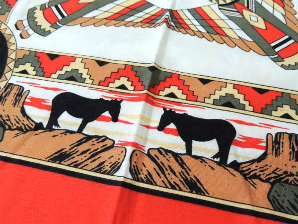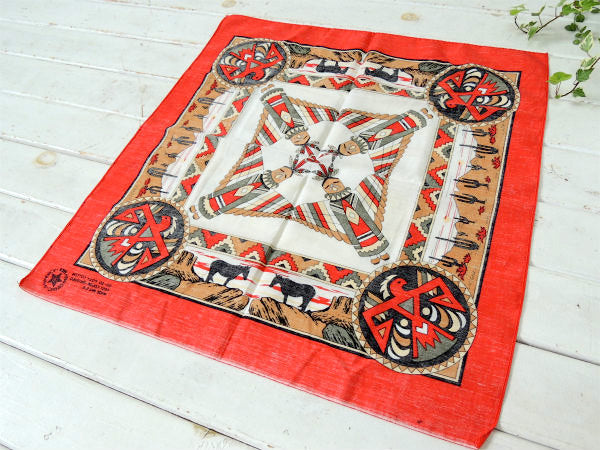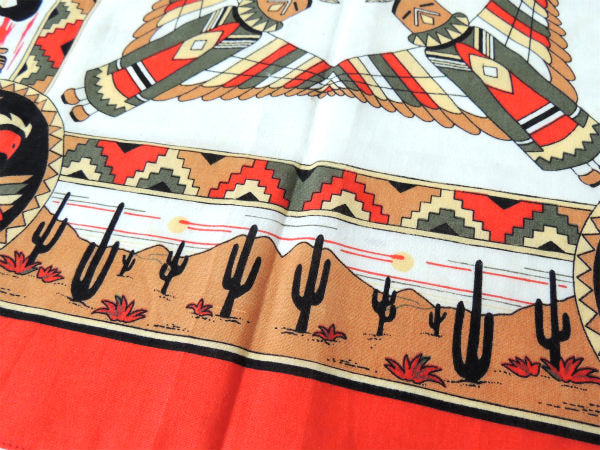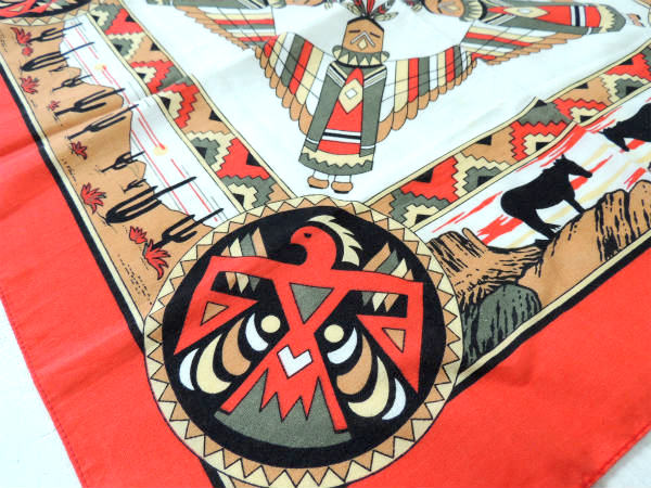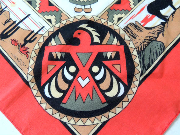 ネイティブアメリカン・サンダーバード&サボテン柄・ヴィンテージ・バンダナ/ハンカチ USA
