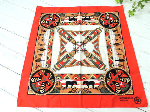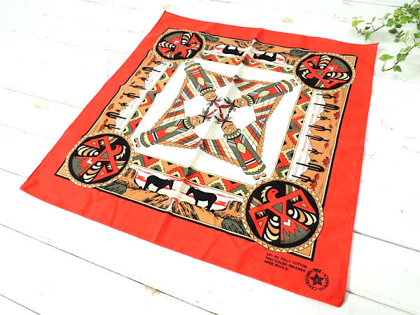 アメリカ西海岸で見つけました・・メイドインUSA『CRAFTED WITH PRIDE IN AMERICA』のネイティブ柄・ヴィンテージ・バンダナです。