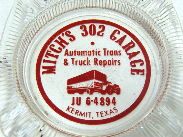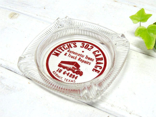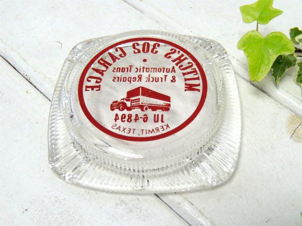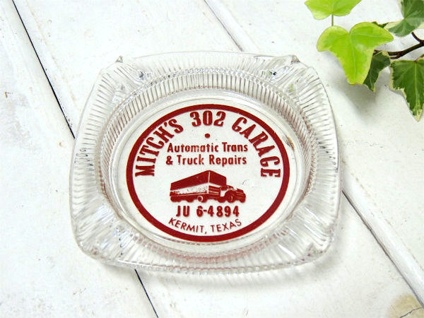 アメリカで見つけました・・テキサス州『MITCH'S 302 GARAGE』トラック・修理工場・アドバタイジング・ガラス製・ヴィンテージ・灰皿(アシュトレイ)です。