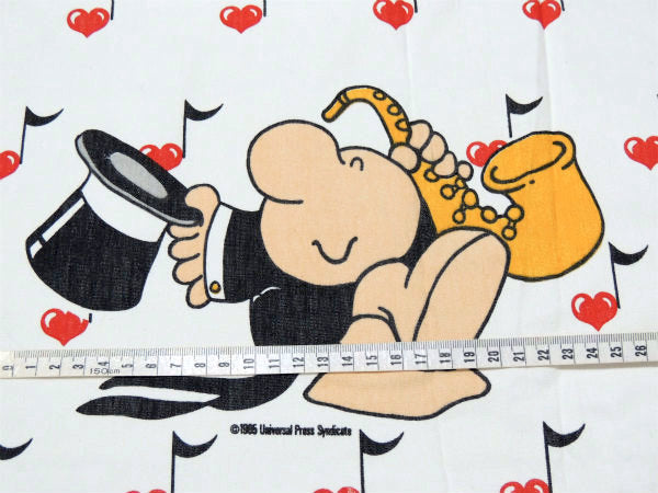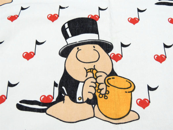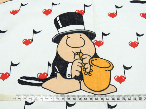 ホワイトベースに、タキシード姿でトランペットを吹いているジギー&ハート音符柄の、とっても可愛いプリントです。
