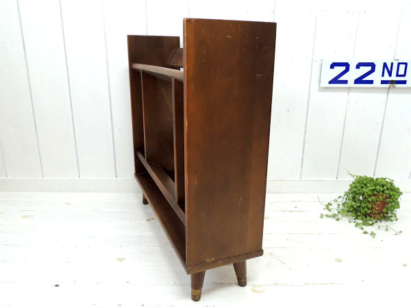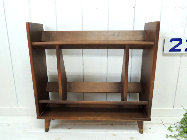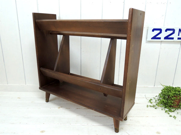 アメリカ西海岸・サンフランシスコでみつけました・・木製の脚付きヴィンテージ・ブックシェルフ(本棚&マガジンラック)です。