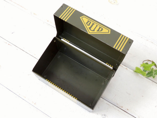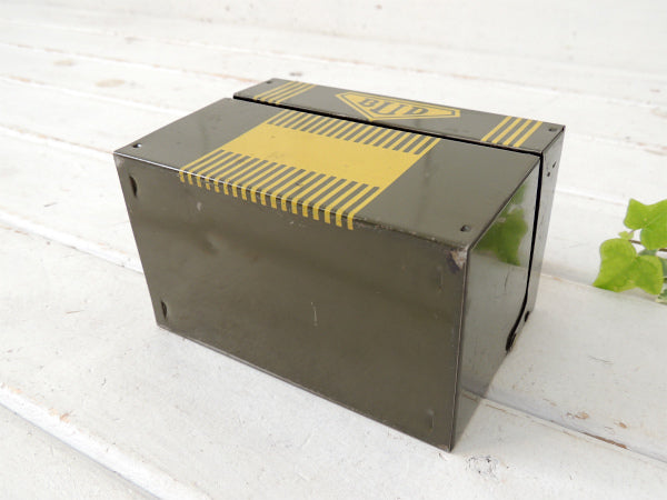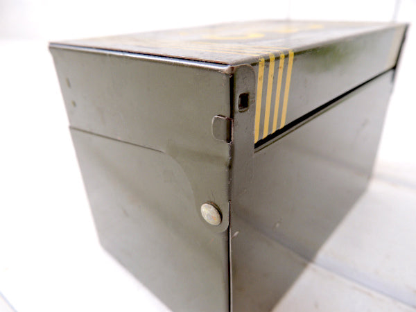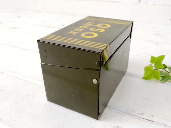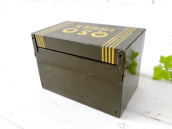 【QSO INDEX】オリーブグリーン色・ティン製・ヴィンテージ・カードボックス/ファイルボックス